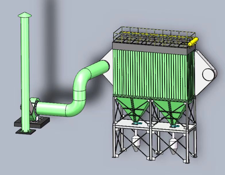 2) dust collection and filtration system: mainly composed of filter bag, bag cage, flower plate assembly and air inlet distribution system.