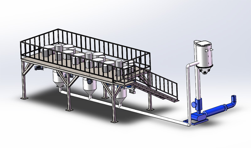 3 the top of each bin is equipped with a dust collector. After loading, the materials fall back into the bin to avoid flying dust.