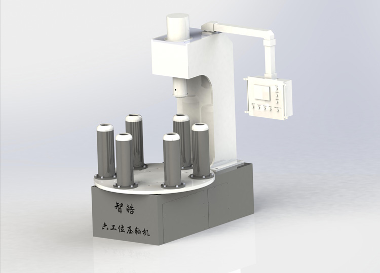 再生资源设备 洗衣机滚筒压轴机机体由水平机架和竖直机架,竖直机架上设有平台,平台上设有与控制器连接的第一动力装置,第一动力装置的升降杆与压头连接,水平机架上设有主轴,主轴位于水平机架下方的一端,通过减速器与第二动力装置连接,主轴的另一端与转盘连接,转盘的上表面设有均匀分布的支筒,转盘的下表面设有与支筒交错设置的定位块,转盘的外沿上设有与定位块对应设置的卡槽,转盘靠近竖直机架的一端与支撑组件连接,转盘的一侧与定位组件连接。能够快速拆解洗衣机滚筒的塑料内筒和金属内筒轴,提高洗衣机滚筒的拆解效率,降低人工劳动强度。